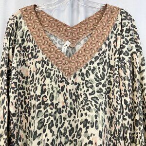 Vanilla Bay Women’s V-Neck Long Cuff Sleeve Mixed Print Top V-Back Small