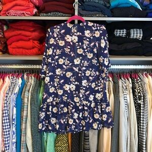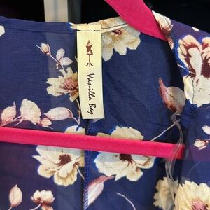 Vanilla Bay blue/white flower print 1/2 sleeve kimono size OS