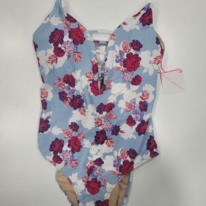 Vanilla/Beach One Piece Swimsuit Light Blue Floral - New With Tags
