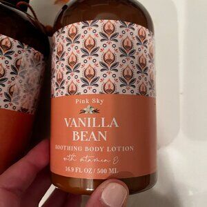 This is a listing for 2 bottles of vanilla bean soothing body lotion with Vitamin E from Pink Sky.