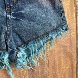 Vanilla Breeze Dip Dye Pink Blue Raw Hem Cut Off Jean Shorts XS