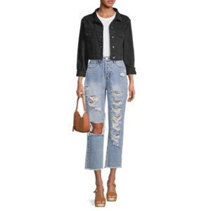 Grab these super cool 90’s boyfriend jeans from Vanilla Star for effortless cool retro vibes. These high rise boyfriend jeans feature a frayed hem with covered button fly and heavy destruction details to complete your edgy look.