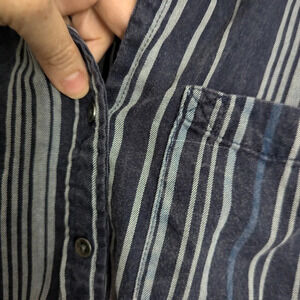 Nice button down with slightly faded vertical stripes. Fashionable yet comfortable.