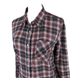 Vanilla Star Button Up Shirt Womens Size LARGE Plaid Lace Trim Collared