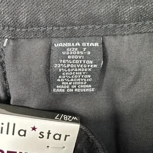 Vanilla Star Crochet Denim Shorts Women’s 28 Black, Mid-Rise, Classic Fit, Style# V33095-3, Cotton blend with stretch, Crochet lace front, Frayed raw hem, Button & zip fly, Five-pocket styling, Casual, Festival, Summer, Beachwear, Crafted from soft stretch denim, they offer a comfortable fit with just the right amount of structure. The mid-rise waist and classic 5-pocket design make them versatile enough for casual days, concerts, and beach outings alike.