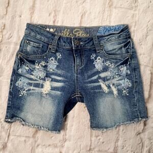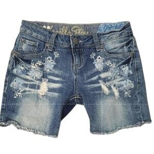 Vanilla Star Women’s Embroidered Cut-Off Jean Shorts – Size 0 🌸 Floral, Distressed & Effortlessly Cool! Brand: Vanilla Star Size: 0 Style: Cut-off jean shorts with embroidery and distressing Fabric: Cotton blend with some stretch Condition: Gently worn, no major flaws Design Features: Medium wash denim Frayed hem and distressed details Beautiful light blue floral embroidery on front Embroidered Vanilla Star logo inside waistband Flat Measurements (approx.): Waist: 13.5" Rise: 7" Inseam: 5" ✨ Great for casual days, concerts, or pairing with a flowy top and sandals! 📦 Fast shipping from a smoke-free home. Bundle and save! E80