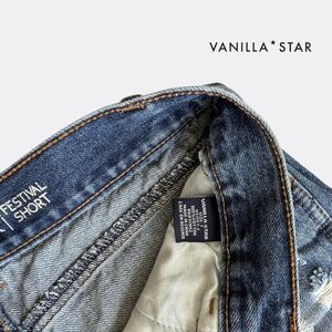 Vanilla Star Festival Distressed Denim Shorts – Size 7 – 100% Cotton – Y2K Style