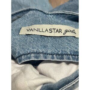 Vanilla Star Girls Denim Overall Romper & White T-Shirt Set Size S 7/8 Light Was