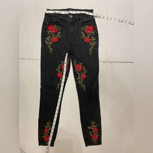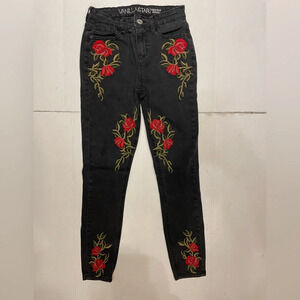 Vanilla Star High Rise Skinny Black Jeans With Embroidery Size 3