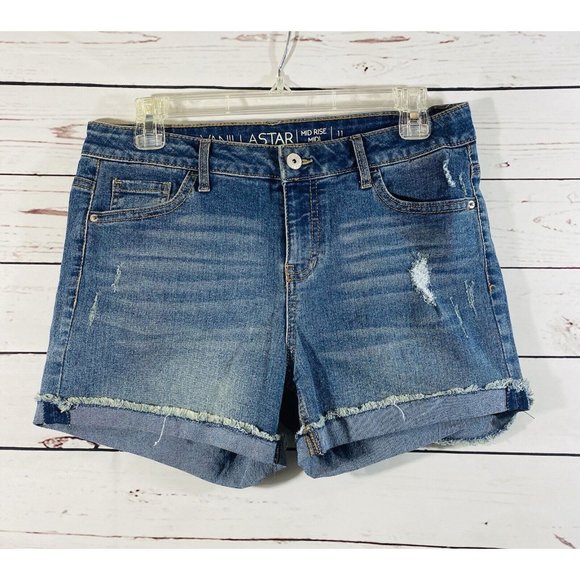 Vanilla Star Jean Shorts Sz 11 Denim Rolled Cuff Booty Mini Juniors Raw Hem