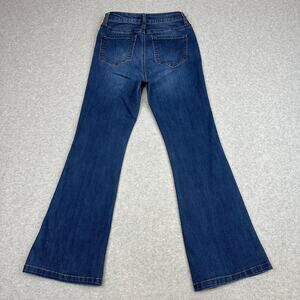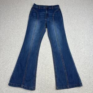 Vanilla Star Juniors Front-Seamed Flared-Leg Jeans Size 7 – Medium Wash Stretch Denim, High-Stretch Fabric for Comfort and Flexibility, Flared Leg with Front Seam Detail for a Retro Look, Zip Fly with Button Closure, Classic 5-Pocket Design, Snug Through Hip and Thigh, Trendy and Youthful Silhouette, Perfect for 70s-Inspired Outfits, Everyday Casual, or Festival Wear.