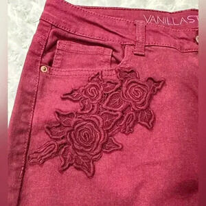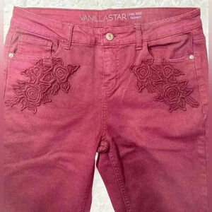 Vanilla Star Juniors Mid Rise Skinny Burgundy Jeans
