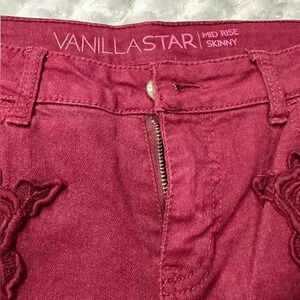 Vanilla Star Juniors Mid Rise Skinny Burgundy Jeans