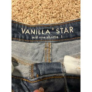 Vanilla Star Juniors Mid Rise Denim Shorts Blue Juniors Size 1 Distressed Hem