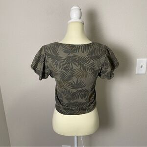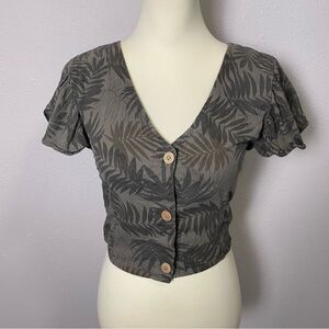 Vanilla Star Linen Blend Short Ruffle Sleeve Button Front Blouse Women's Size S