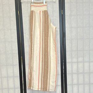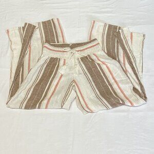 Vanilla Star Linen Gauze Flyaway Palazzo Pants M Wide Waist Split Sides Striped