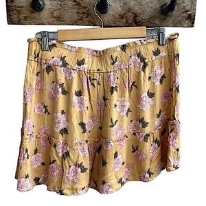 Vanilla Star Mustard Yellow Flowy Pink Floral Print Skort Juniors XL