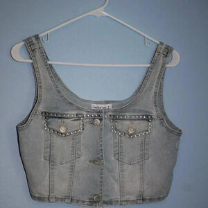 Vanilla Star NWOT Button Front Cropped Jean Tank Top Size Medium