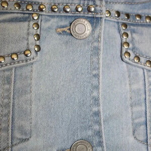 This light washed new without tags button up front denim vest is so cute. It can be worn alone or under a cardigan making it versatile for many seasons and occasions. Sized medium and made of 78% Cotton, 21% Polyester, and 1% Spandex. Functioning pockets on the front.