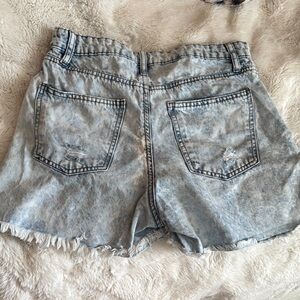 Trendy ripped jean shorts by Vanilla Star. Light blue denim with a casual vibe.