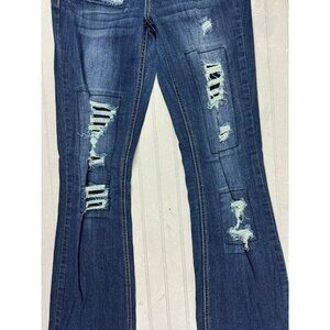 Vanilla Star Size 3 Womens Jeans Distress Mid Rise Bootcut Low Rise Dark Wash