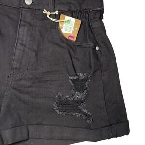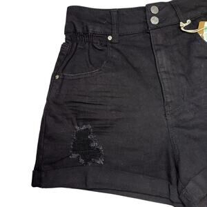 Vanilla Star Super High Rise Tapered Leg Distressed Black Denim Mom Shorts