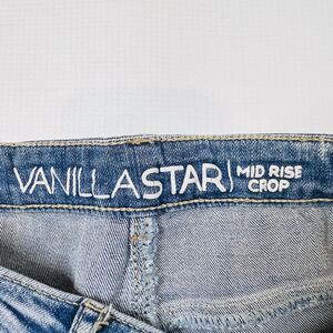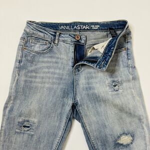 Vanilla Star Women's Blue Mid Rise Crop Distressed Stretch Jeans Size 9 School.