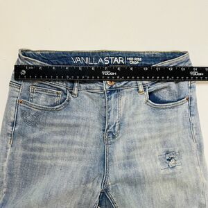 Vanilla Star Women's Blue Mid Rise Crop Distressed Stretch Jeans Size 9 School