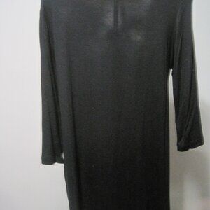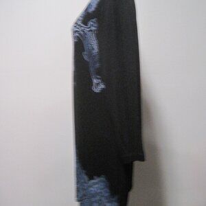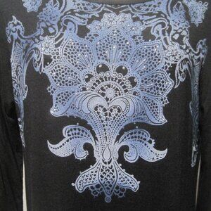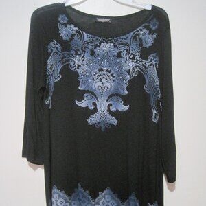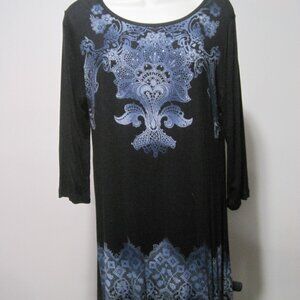 Vanilla Star Women's Large Black & Blue Paisley Medium Sleeve Beaded Rayon Dress