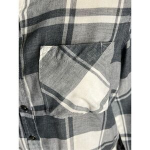 Vanilla Star Women's Medium Black Grey White Long Sleeve Button Down Shirt Top