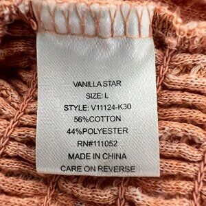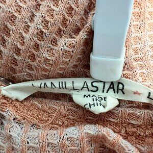 Vanilla Star Women’s Round Neck Long Sleeve Top Gathered Waist Coral Large