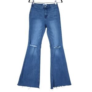 Vanilla Star Womens Seam Back Flare Jeans Size 26 Light Wash Distressed Raw Hem