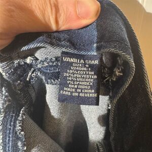 Keywords: Vanilla Star, women's jeans, flared jeans, high-waisted, medium wash, denim, size 9, blue jeans, regular fit, pre-owned jeans, high rise, zip closure, cotton blend, flared leg, 30-inch inseam.