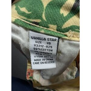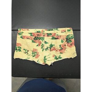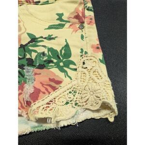 Vanilla Star Yellow Floral Distressed Crochet Appliqué Denim Short Shorts Size 1