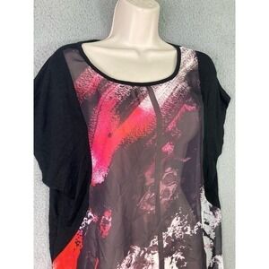 Vanilla Sugar Black Pink White Blouse XL Cap Sleeve Graphic Tee See-Through