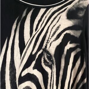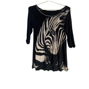 Vanilla Sugar Tunic Top Zebra Motif Rhinestone Detail 3/4 Sleeve Boat Neck Small