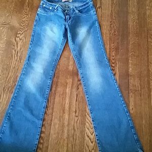 Cute, worn look jeans with embroidered pockets. 31 inch inseam. Size 3