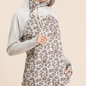 Soft and comfortable, leopard double hoodie with zipper on neck and thumbholes.