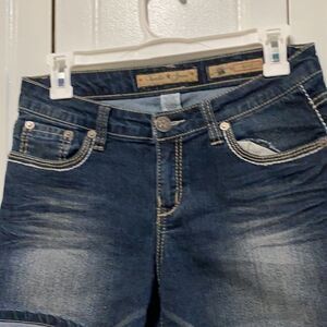 Vanilla Jeans denim shorts size 4 in great condition. Waist approximately 13.5” flat , inseam uncuffed is approximately 6” and rise is 8”.