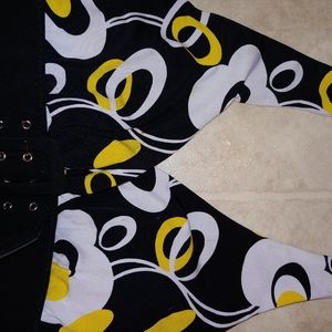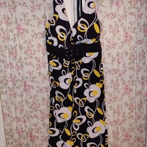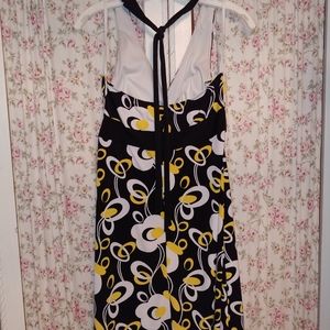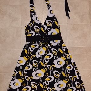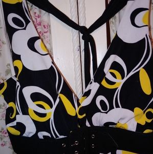 Fun flirty dress for out on the town. Great straps for around neck, great fun colors. Padded breast with belt just below and flows really nice on bottom.