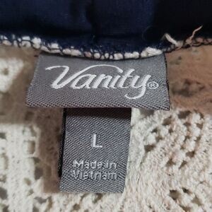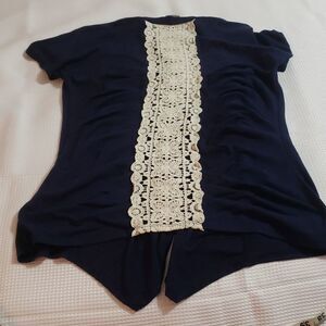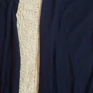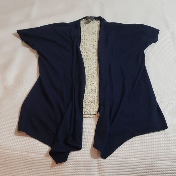Vanity. Adorable Blue Jersey & Cream Lace Back Inset Cardigan. Size L.