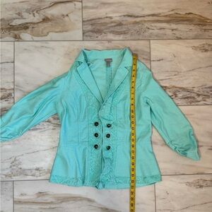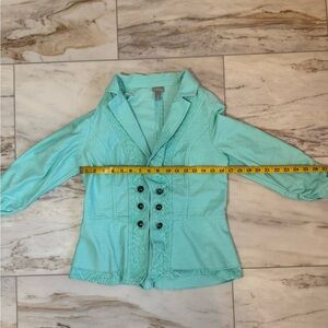 Vanity Aqua Blue Military Style Jacket Size M | Lace Trim & Ruched Sleeves