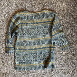 Vanity Aztec Sweater Womens Size M Green Ethnic Boho Thick Fleece 3/4 Sleeve USA