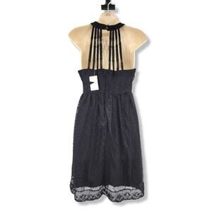 Vanity Black Lace Halter Dress Sleeveless A-Line Fit and Flare Party Cocktail