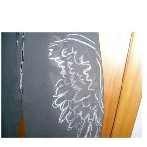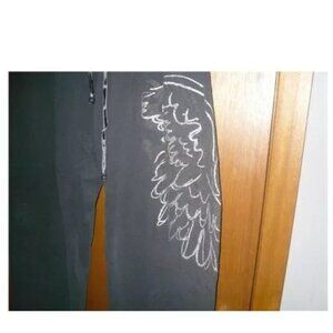 Vanity Black Silver Angel Wings Sweat Sleep Lounge Pants Jogger XL Wrap Around H