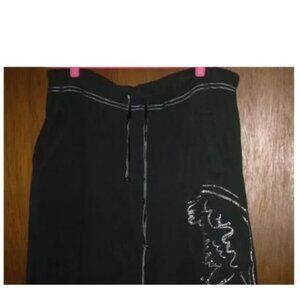 Vanity Black Silver Angel Wings Sweat Sleep Lounge Pants Jogger XL Wrap Around
