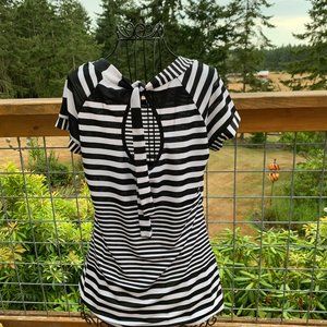 This blouse does not have a size so please go by my measurements. I would say a medium.