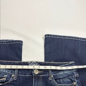 Discover the perfect blend of style and comfort with Vanity's blue boot cut jeans. Crafted from durable denim, these jeans feature a dark blue wash with subtle fading for a modern look. The classic boot cut silhouette ensures a versatile fit for any occasion.