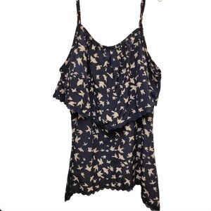 Vanity Blue Cream Lace Bird Dove Flutter Camisole Size Medium
