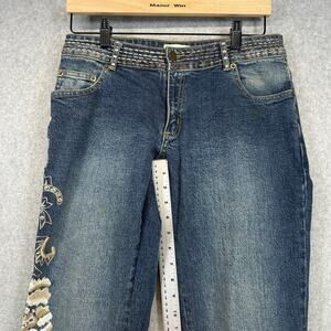 Vanity Collection Jeans Womens Size 6 Blue Floral Embroidered Cotton Blend